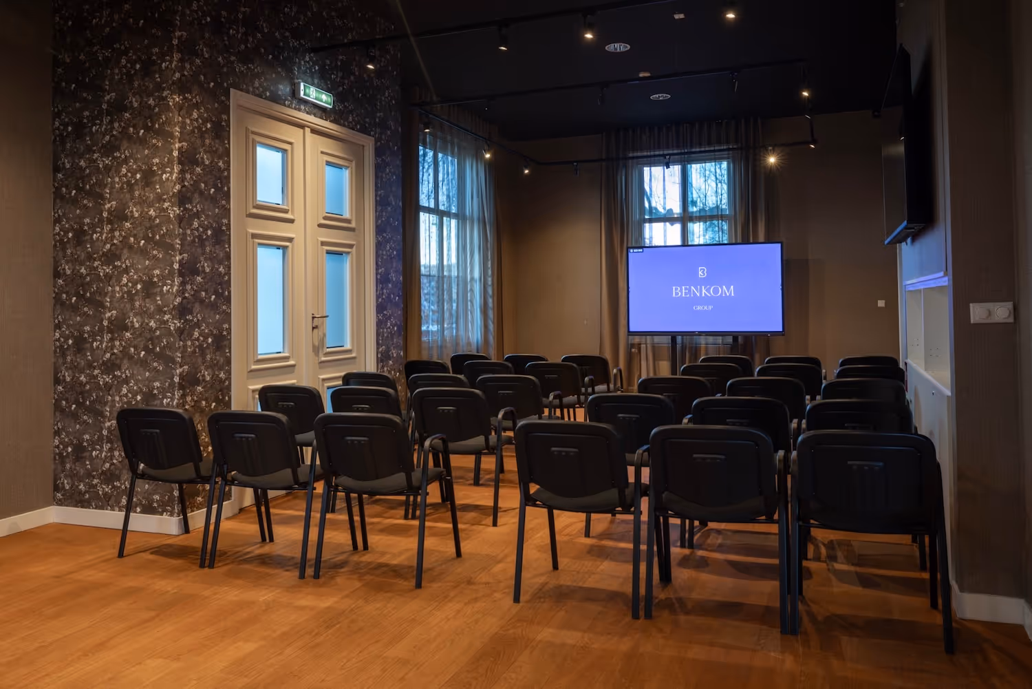De Break-out room kan worden ingericht voor een intieme en interactieve sfeer voor kleineregezelschappen, maar biedt ook volop mogelijkheden voor grotere groepen Of u nu een presentatiewilt geven, een strategische vergadering plant of een gezellige receptie organiseert, De Break-outroom biedt de perfecte ambiance. Zo kunnen stoelen in een strakke theateropstelling wordengeplaatst voor een groot publiek, terwijl een informele borrel opstelling juist uitnodigt tot netwerken enontspannen gesprekken. De ruimte beschikt over een tv-scherm aan de muur, en de locatie beschiktdaarnaast over een groot extern scherm dat in elke ruimte geplaatst kan worden, zodat presentatiesen visuele ondersteuning altijd mogelijk zijn. Daarnaast bieden wij op maat gemaakte cateringopties,van luxe koffiebreaks tot verfijnde diners, zodat uw gasten niets tekortkomen.Receptie/borrel tot 60 personen Theateropstelling tot 50 personen Cabaretopstelling tot 20 personen Blokopstelling tot 25 personen U-vorm opstelling tot 15 personen Diner tot 40 personen %20(1).jpg)